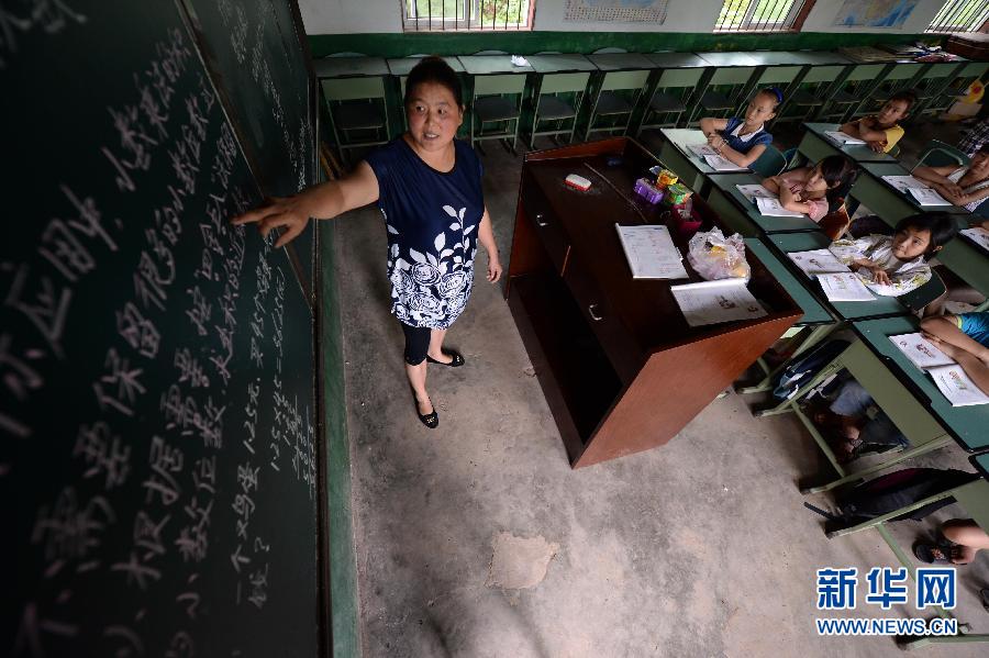 Ming Hongyan teaches students mathematics in a village school in Nanchong, southwest China's Sichuan province on Sept. 9, 2014. (Xinhua/Li Xiangyu)