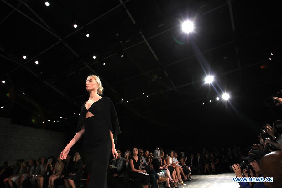 A Model presents a creation of the Spring/Summer 2015 ANGEL SANCHEZ collection during the New York Fashion Week in New York, the United States, Sept. 8, 2014. (Xinhua/Cheng Li)