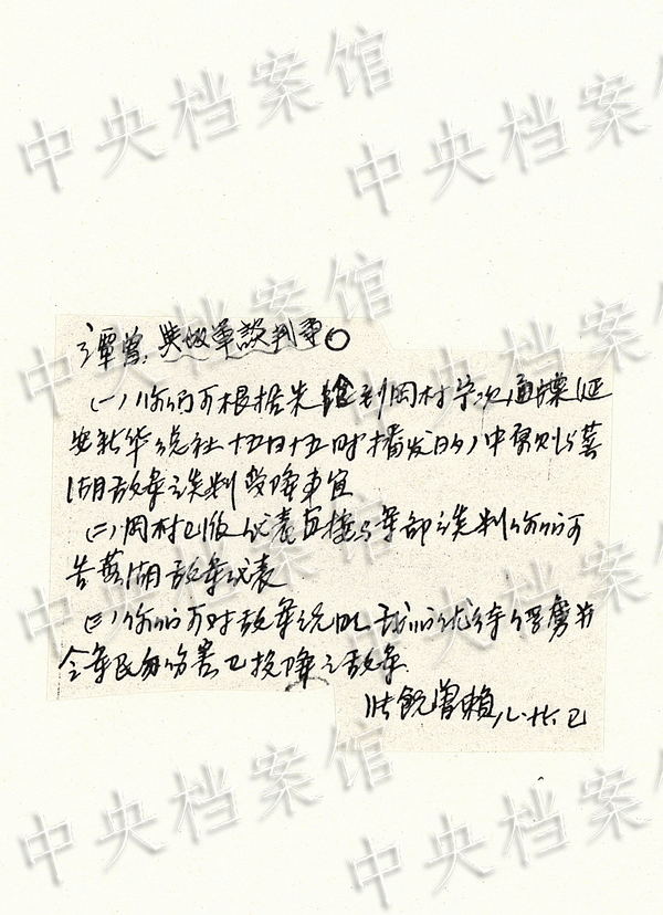 On August 16, Zhang Yunyi and Rao Shushi gave Tan Xilin and Zeng Xisheng instructions on how to negotiate a surrender of Japanese army. (Photo/China's State Archives Administration)