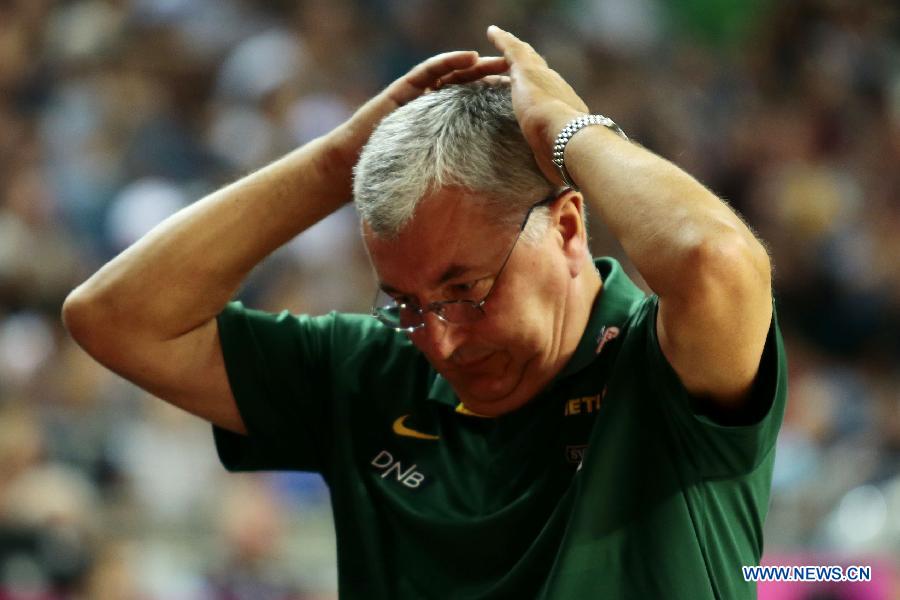 Lithuania's Coach Jonas Kazlauskas reacts during the semifinal match with the United States at the 2014 FIBA Basketball World Cup Spain in Barcelona Sept. 11, 2014. Lithuania lost 68-96. (Xinhua/Pau Barrena)