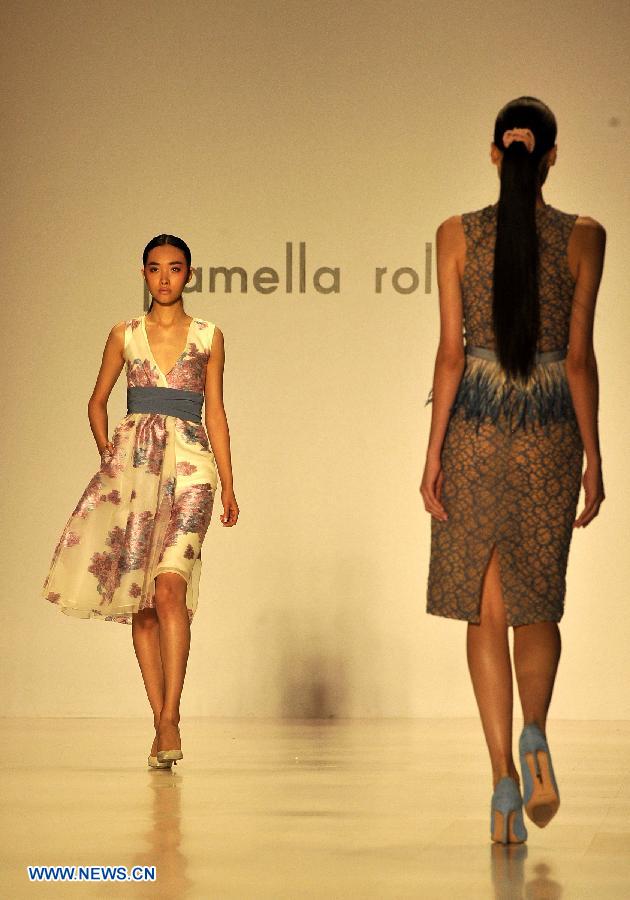 Models present creations of the Spring/Summer 2015 Pamella Roland collection during the New York Fashion Week in New York, the United States, on Sept. 9, 2014. (Xinhua/Wang Lei)