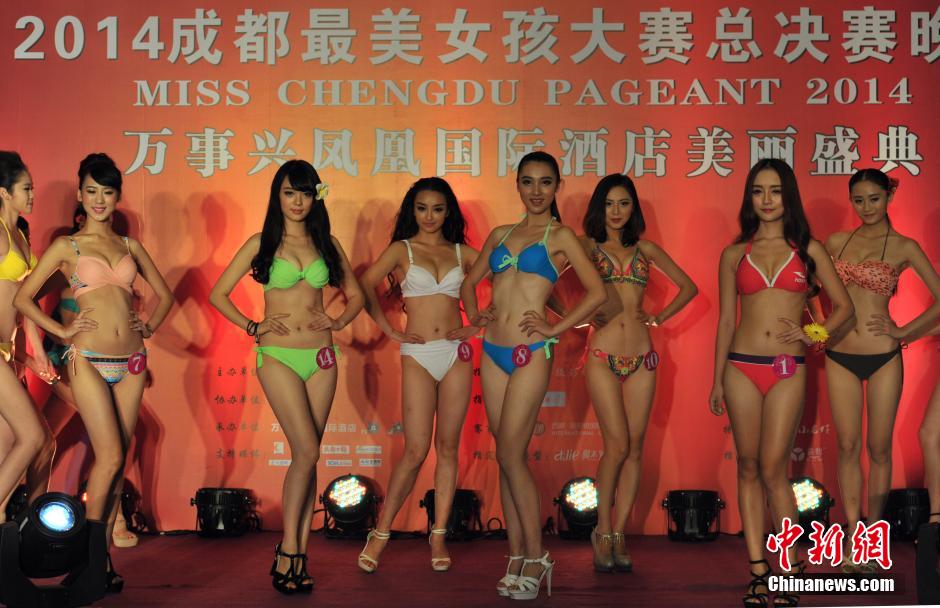 Belles compete in swimsuits on Sept. 10, 2014. (CNS/Liu Zhongjun)