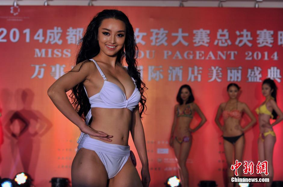 You Xue, contestant No. 9, shows in swimsuit on Sept. 10, 2014. (CNS/Liu Zhongjun)