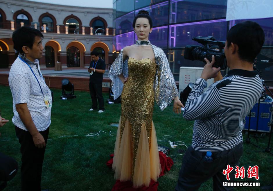 A robot “beauty” attracts much attention at the Davos forum in Tianjin Minyuan Stadium where the cultural night of the Dovos 2014 summer Forum is held. Guests from home and abroad experienced the charm of Tianjin by tasting local foods and enjoying artistic performances. (Chinanews.com/Tong Yu)