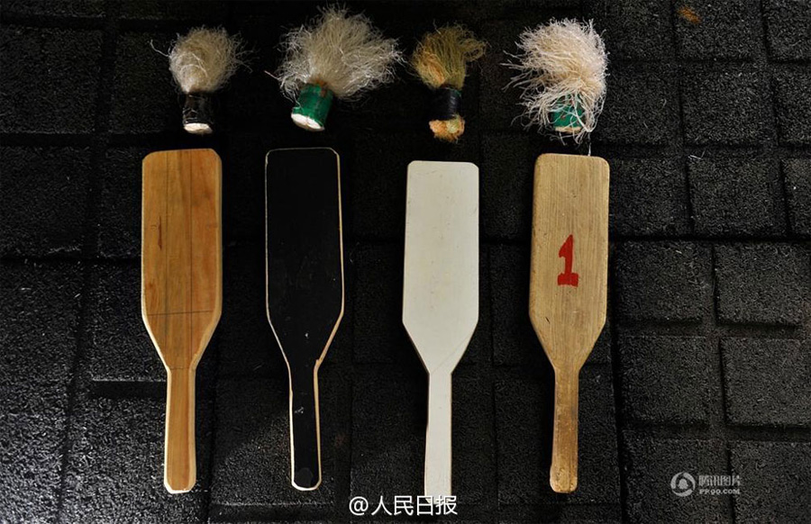Battledore and shuttlecock used in paddle badminton made by Bi Shoujin. (cri.cn/Yin Liang)