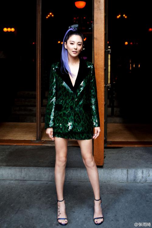 Zhang Yuqi, Wang Quan'an's wife, an actress. Zhang was in the United States for New York Fashion Week when Wang was caught. (Photo source: Zhang Yuqi's microblog)