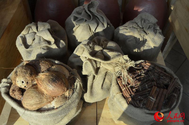 Trading goods including coconuts and Cinnamon bark are exhibited at the museum. (People's Daily Online/Du Mingming)