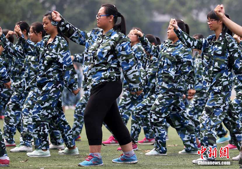 Female freshmen participate in military training in Nanjing. (CNS/Yang Bo)