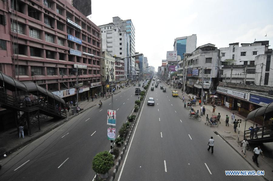 Picture taken on Sept. 18, 2014 shows a scene of the city during the countrywide 24-hour strike enforced by Bangladeshi Islamist party Jamaat-e-Islami who demand release of their party leader in Dhaka, Bangladesh. Bangladesh's largest Islamist party Wednesday called countrywide strike from Thursday to Friday and Sunday to Monday protesting the apex court verdict that awarded one of its high-ranking leader for war crimes of life imprisonment. (Xinhua/Shariful Islam)