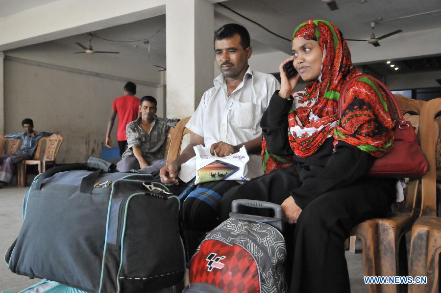 Passengers wait for buses at a bus station during countrywide 24-hour strike enforced by Bangladeshi Islamist party Jamaat-e-Islami who demand release of their party leader in Dhaka, Bangladesh, Sept. 18, 2014. Bangladesh's largest Islamist party Wednesday called countrywide strike from Thursday to Friday and Sunday to Monday protesting the apex court verdict that awarded one of its high-ranking leader for war crimes of life imprisonment. (Xinhua/Shariful Islam)
