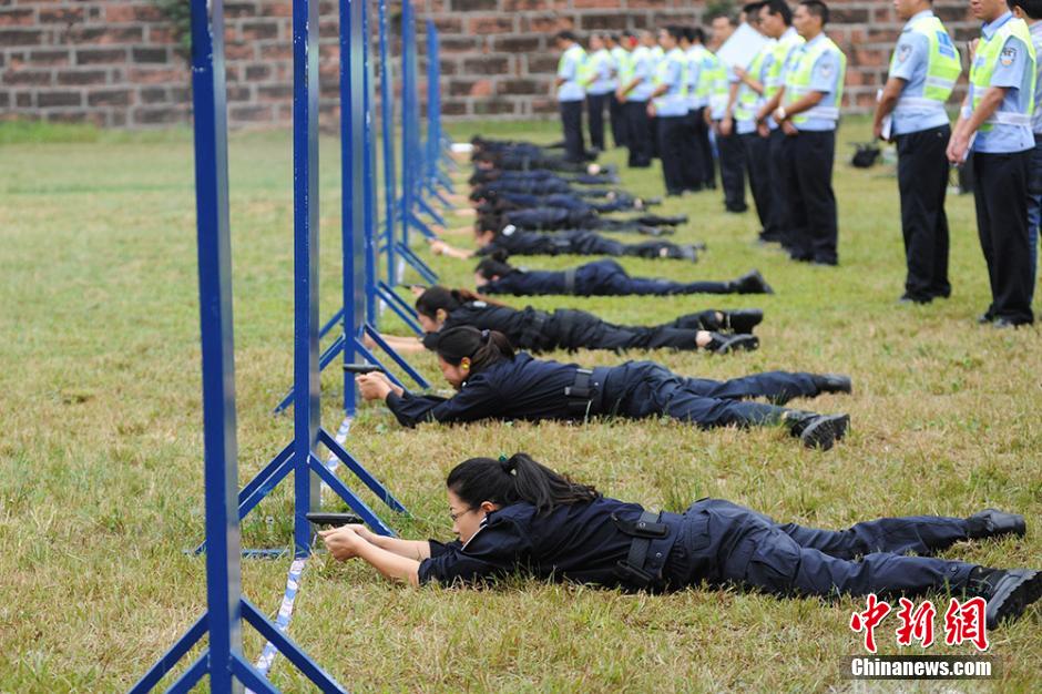 Policemen perform in the shooting contest. (CNS/An Yuan)