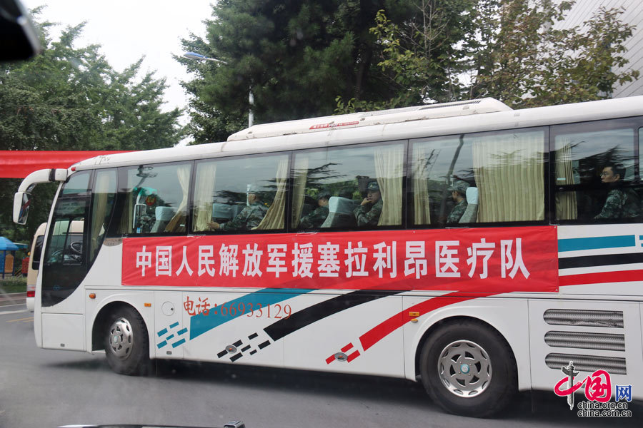 The medical team of the Chinese People's Liberation Army (PLA), consisting of 30 people from the 302 Military Hospital of the PLA, left Beijing for Sierra Leone via a special airplane on September 16, 2014, with the mission of treating Ebola patients.