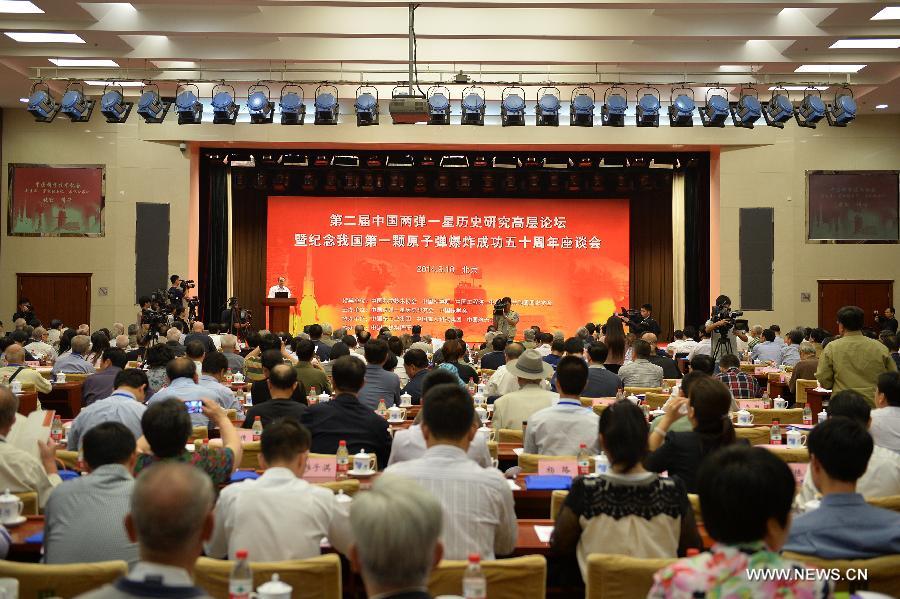 A seminar is held to commemorate the 50th anniversary of the success in the country's first atomic bomb, in Beijing, China, Sept. 18, 2014. (Xinhua/Li Xin)