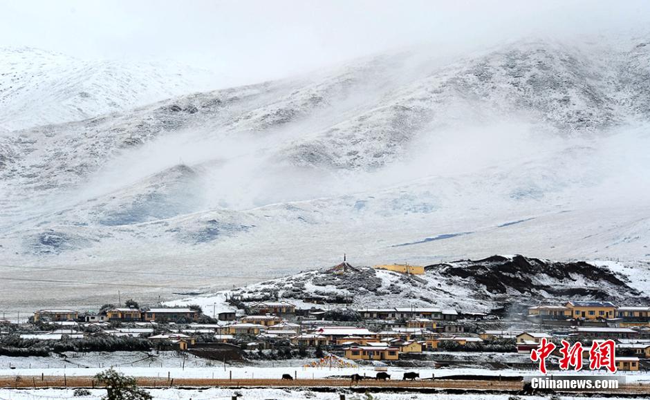 | Hongyuan Grassland experiences its first autumn snow this autumn on Sept.16, 2014. Hongyuan Grassland (literally red prairie or red plain), located in the middle of the Aba Tibetan and Qiang Autonomous Prefecture at the north of Sichuan, is known as "Gold Sands and Silver Sands" of plateau for its unique natural landscape and abundant natural resources. (Chinanews.com/Xie Hongcheng) |