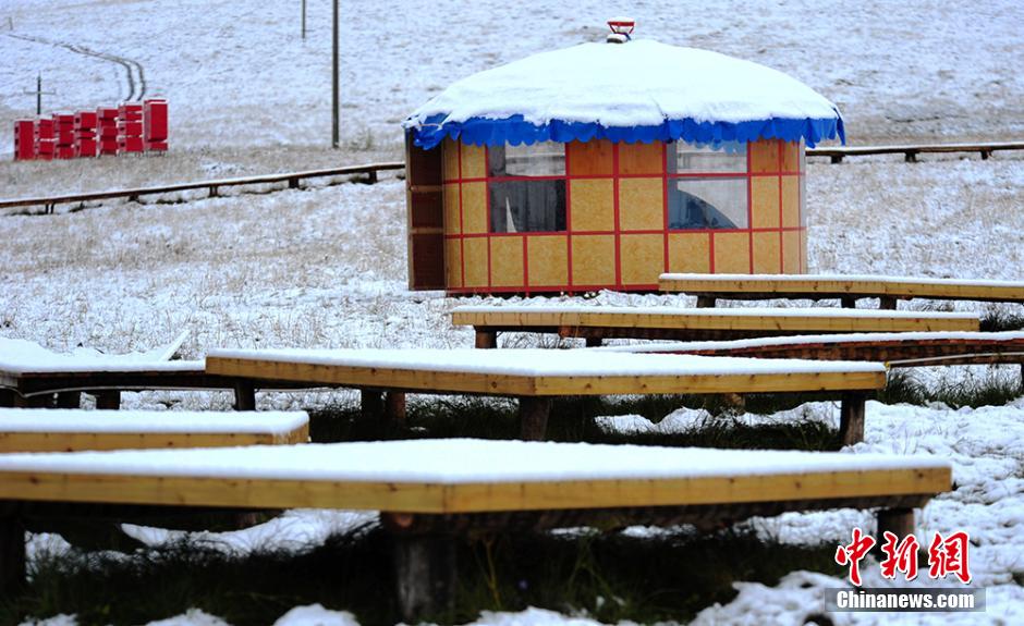 Hongyuan Grassland experiences its first autumn snow this autumn on Sept.16, 2014. Hongyuan Grassland (literally red prairie or red plain), located in the middle of the Aba Tibetan and Qiang Autonomous Prefecture at the north of Sichuan, is known as "Gold Sands and Silver Sands" of plateau for its unique natural landscape and abundant natural resources. (Chinanews.com/Xie Hongcheng)