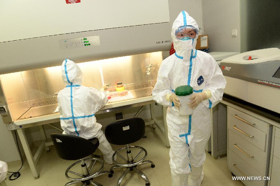 | Researchers work in Chinese Center for Disease Control and Prevention (CDC) in Beijing, capital of China, Sept. 19, 2014. Chinese Center for Disease Control and Prevention announced on Friday that a diagnostic kit for ebolavirus was successfully developed and it would be soon applied in Sierra Leone. (Xinhua/He Junchang) |