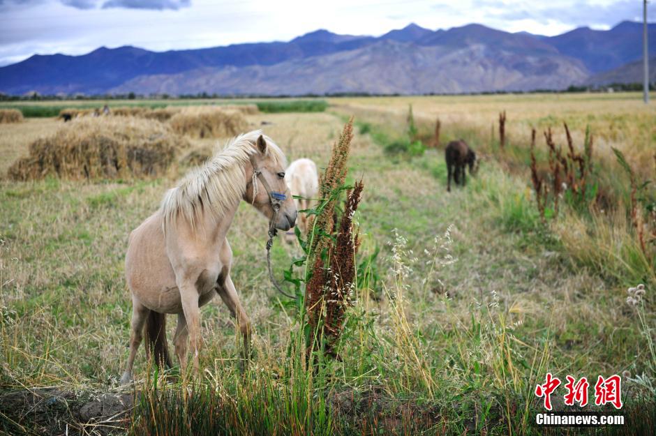 Highland barley harvest has begun in Tibet. In Lhasa and Shigatse, farmers are busy harvesting the highland barley in lands covered with golden ears of barley. (Chinanews.com/Tang Zhaoyang)