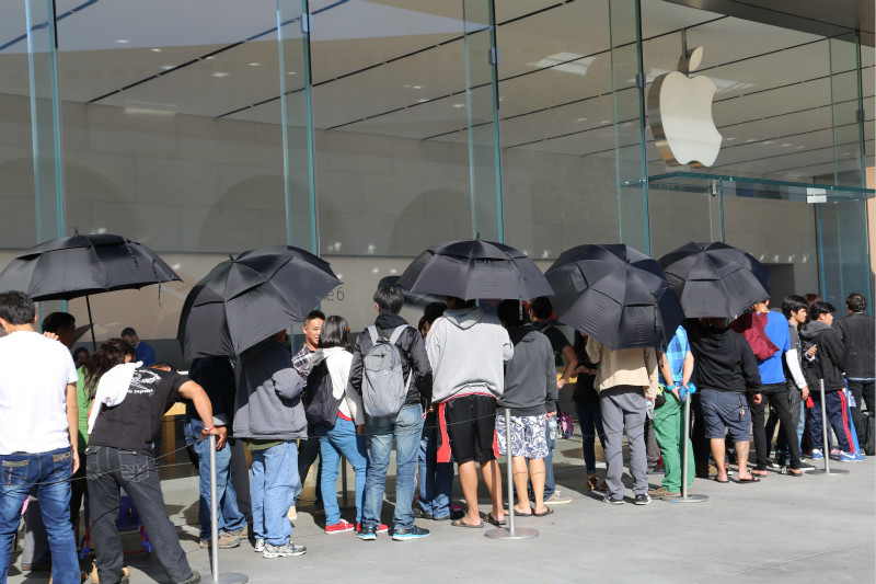Apple fans wait in line for latest iPhones. (People's Daily Online/Han Shasha)