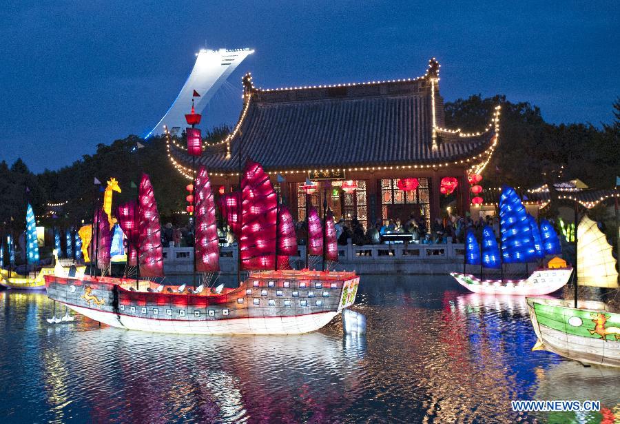 Lantern works are seen at the Botanical Gardens, Montreal, Canada, on Sept. 20, 2014. (Xinhua/Andrew Soong)
