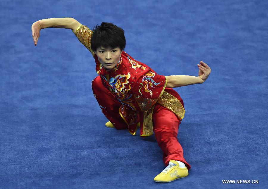 Geng Xiaoling of China's Hong Kong performs during the women's Changquan final of Wushu competition at the 17th Asian Games in Incheon, South Korea, Sept. 23, 2014. Geng Xiaoling won the silver medal. (Xinhua/Lin Yiguang)