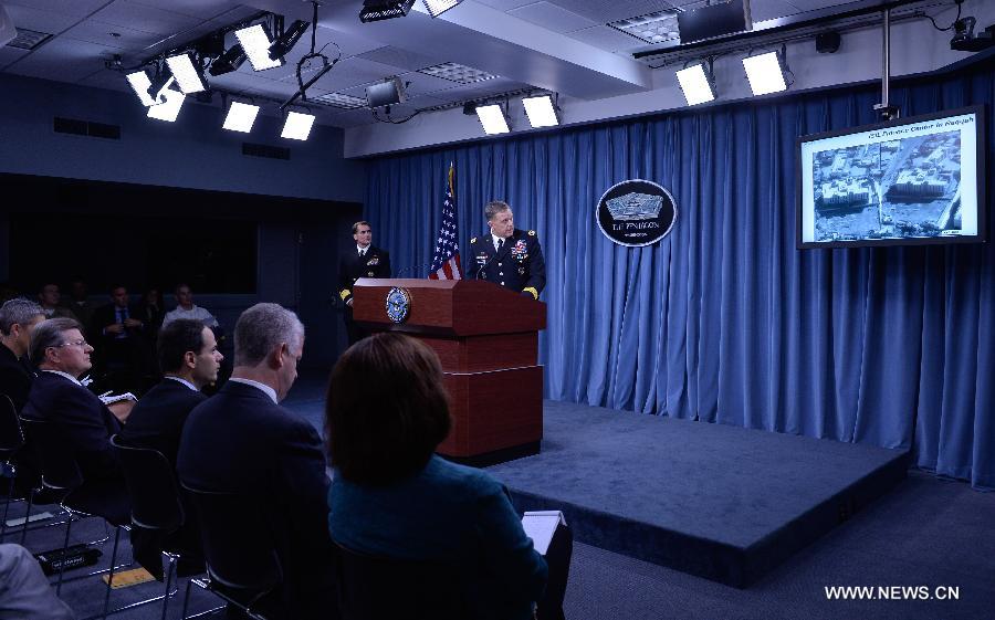 US Lieutenant General William Mayville briefs the press during a briefing at the Pentagon in Washington D.C., capital of the United States, Sept. 23, 2014. The airstrikes on the Islamic State (IS) targets in Syria overnight Monday were "only the beginning" of a coalition effort of the Unites States and its Arabic allies in the anti-IS fight, a Pentagon spokesman said Tuesday. Meanwhile, U.S. Lieutenant General William Mayville detailed the airstrikes, saying that the initial attack came in three waves. The first was launched from sea by cruise missiles followed by waves of U.S. and Arab bombers and fighters. (Xinhua/Bao Dandan)