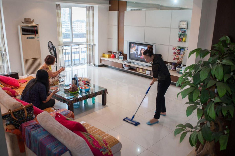 Li Mei always cleans her home when at home. (Photo/Xinhuanet)