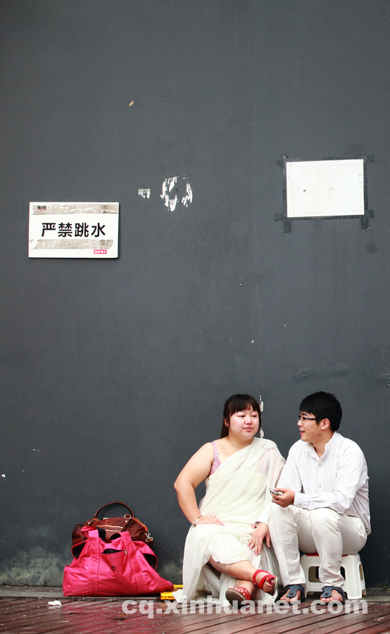 A new couple waits for the photo taking in Nanan District, Chongqing, on Sept. 1, 2014. (Xinhua News Agency/Pengbo)