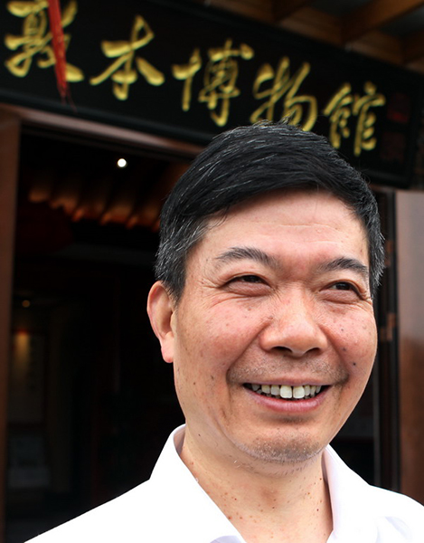Hu Ping takes photos in front of the Dunben Museum. (CNS/Xinhua)