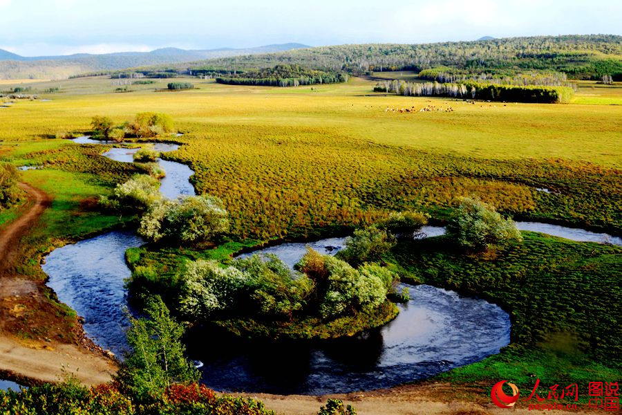 Located in Arun Banner, northeastern Inner Mongolia, Kulungou is full of scenic beauty with herds of cattle and flocks of sheep. (Photo/People's Daily Online)