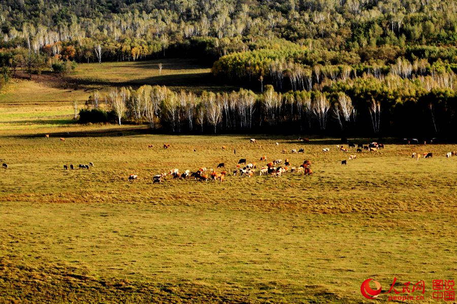 Located in Arun Banner, northeastern Inner Mongolia, Kulungou is full of scenic beauty with herds of cattle and flocks of sheep. (Photo/People's Daily Online)