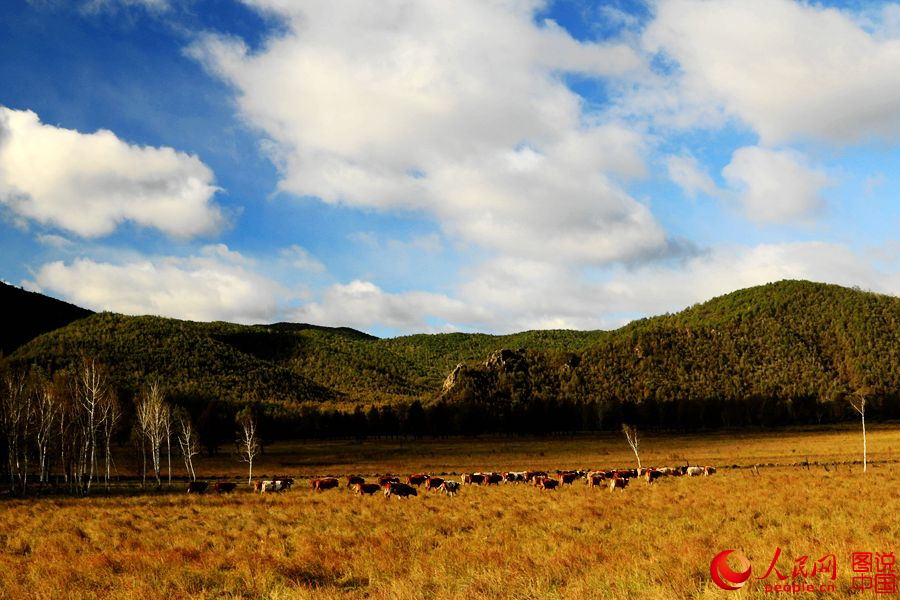 Located in Arun Banner, northeastern Inner Mongolia, Kulungou is full of scenic beauty with herds of cattle and flocks of sheep. (Photo/People's Daily Online)