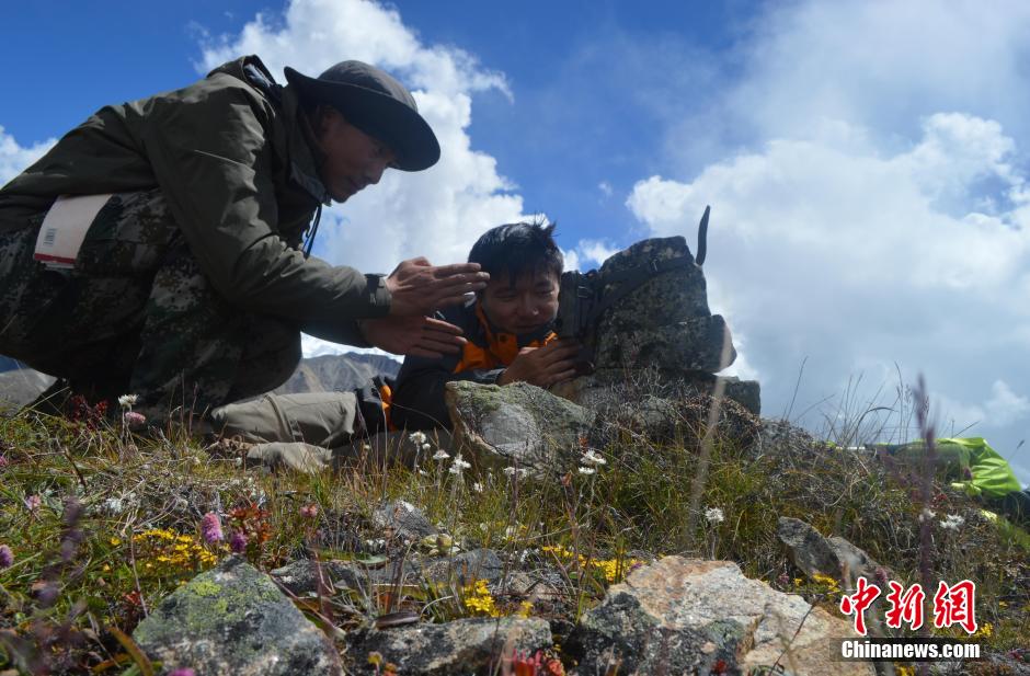 | Snow leopard is taken pictures by camara for the first time in field in natural reserve area of Tibet's Mount Qomolangma, Sept. 24, 2014. (Photo source:chinanews.com) |