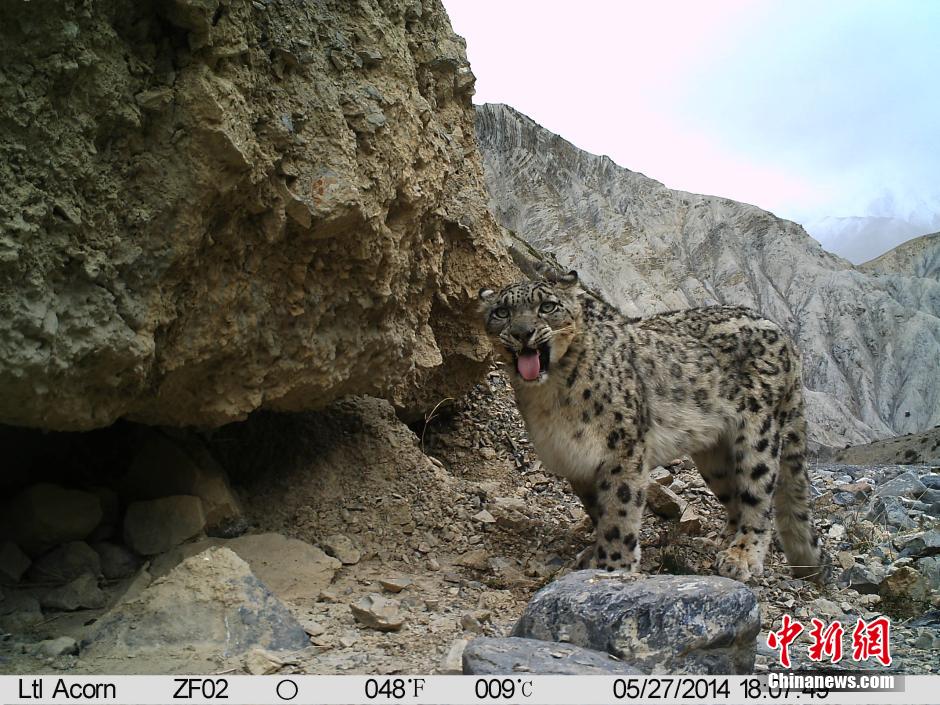 Snow leopard is taken pictures by camara for the first time in field in natural reserve area of Tibet's Mount Qomolangma, Sept. 24, 2014. (Photo source:chinanews.com)