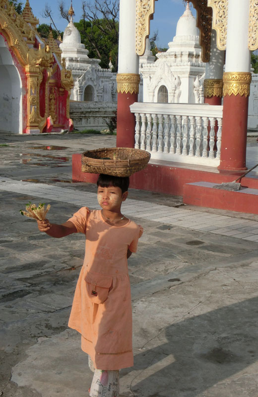 A girl sells flowers at the Kuthodaw Pagoda. (People's Daily Online/Alvaro Lago Sanchez)