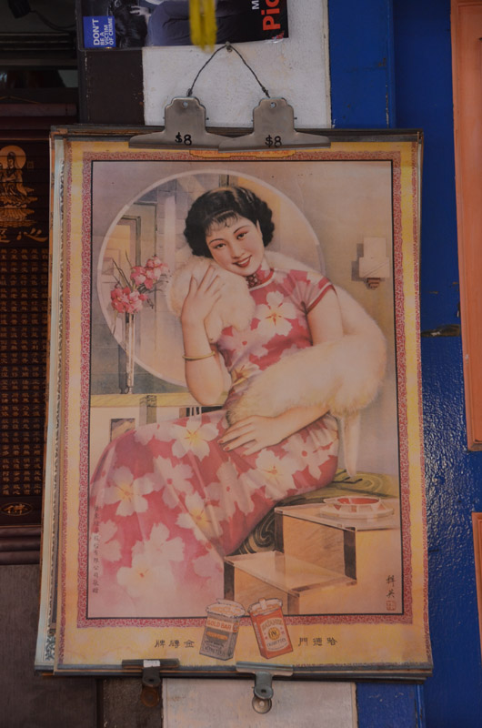 A nostalgic cigarette advertisement hangs outside a shop on South Bridge Road of the Chinatown. (People's Daily Online/Du Mingming)