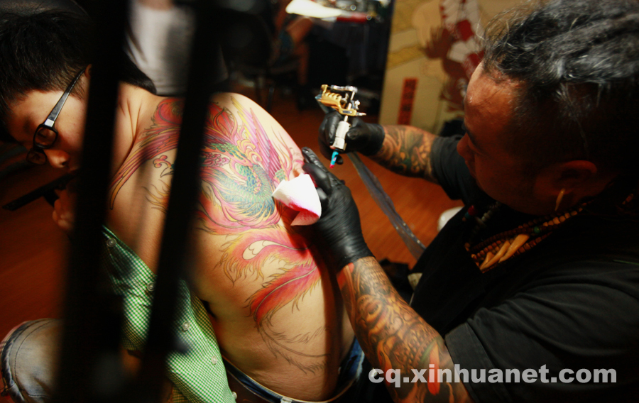 On July 21st, a costumer tattoos. (Xinhua News Agency/Peng Bo)