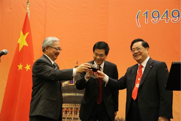 San Francisco, Sept. 24, (People's Daily Online)----Thousand toasted to the 65th anniversary of the founding of the People's Republic of China at the reception held by the Consulate General in San Francisco on Wednesday.