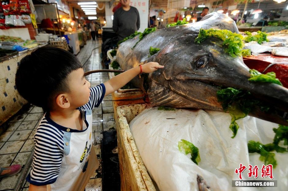 The swordfish was instantly sold out at 100 yuan per kilogram in the market.