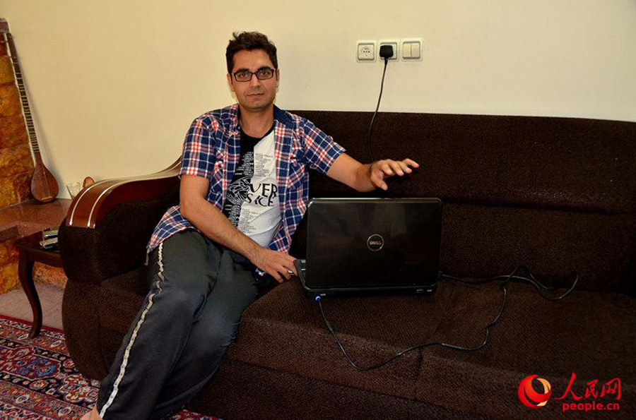 Slosa's brother shows his China-made computer. (Jia Xingpeng/People's Daily Online)