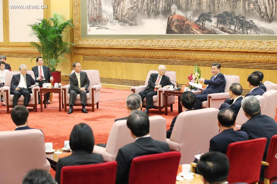 Xi Jinping (1st R rear), general secretary of the Communist Party of China Central Committee, meets with a Taiwanese delegation of pro-reunification groups at the Great Hall of the People in Beijing, capital of China, Sept. 26, 2014. (Xinhua/Yao Dawei)