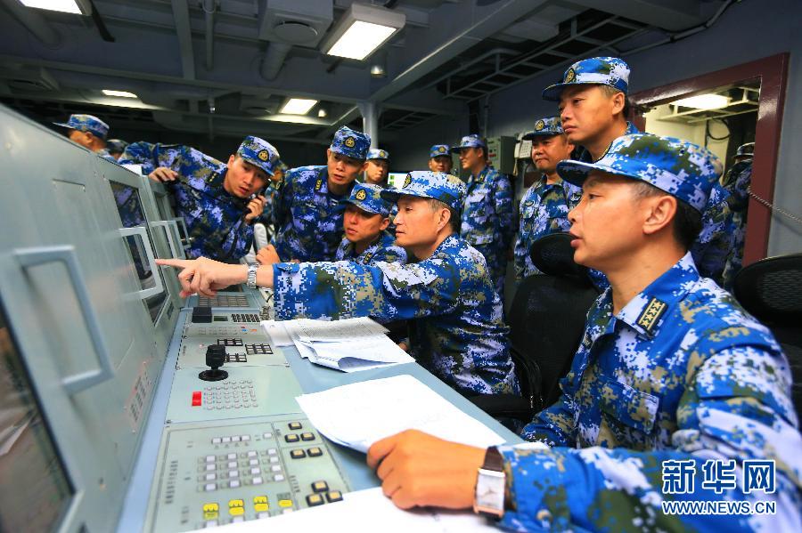 | East China Navy Fleet conducts a training exercise in the South China Sea, in a bid to temper the combat capbility of the troops in complex environment. (Source: Xinhua) |