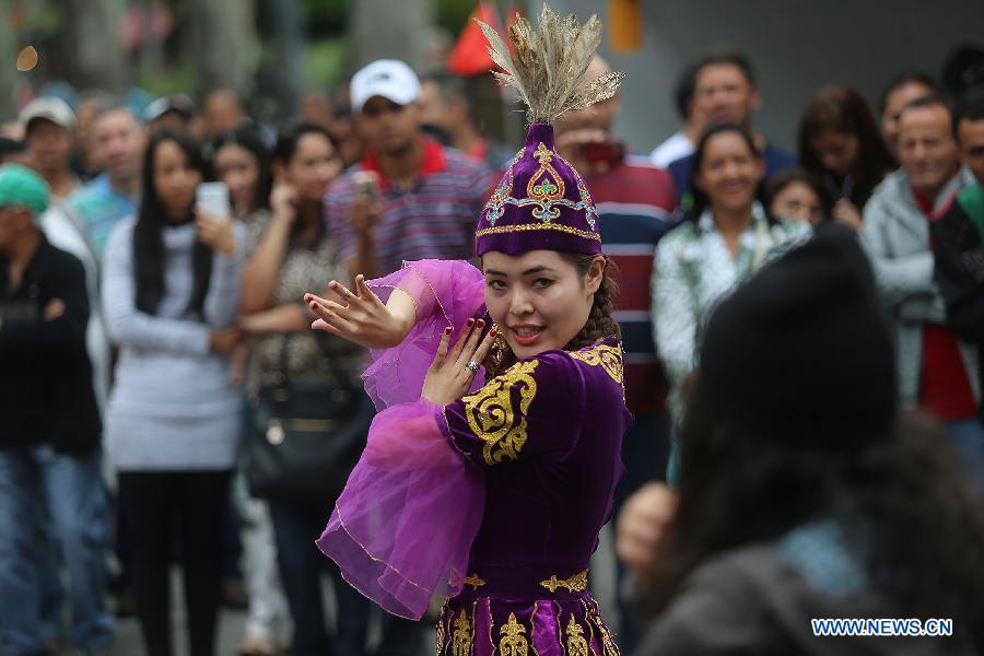 An actress dances during the Confucius Institute Day ceremony in Sao Paulo, Brazil, on Sept. 27, 2014. (Xinhua/Jorge Villegas)
