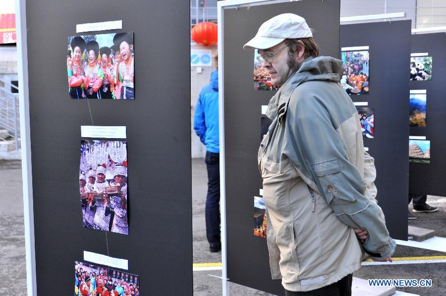 Estonian people enjoy Chinese photo exhibition in Talinn, Estonia, on Sept. 27, 2014. Various Chinese cultural activities marking the first Confucius Institute Day or 10th anniversary of the institute's establishment held at campus at Tallinn University in Tallinn, captital of Estonia on Saturday. (Xinhua/Viktor Vesterinen)