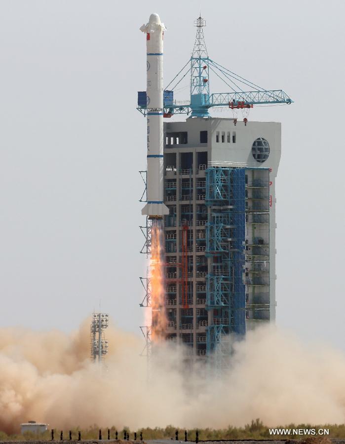 A Long March-2C carrier rocket carrying the Shijian-11-07 experimental satellite flies into the sky at the Jiuquan Satellite Launch Center in Jiuquan, northwest China's Gansu Province, Sept. 28, 2014. The satellite, which was developed by China Spacesat Co. Ltd under the China Aerospace Science and Technology Corporation, will be used to conduct scientific experiments in space. This was the 194th flight of the Long March rocket series. (Xinhua/Yang Shiyao)