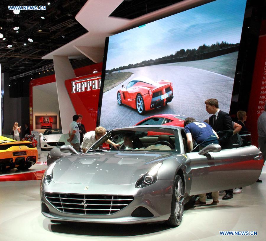 People view a car during the 2014 international car exhibition in Paris, France, on Oct.4, 2014. The 2014 international car exhibition opened its doors to the public on Oct. 4, inviting people to be the first to see new models and check out the latest innovative technology of more than 260 car manufacturers from 18 countries and regions. (Xinhua/Zheng Bin)