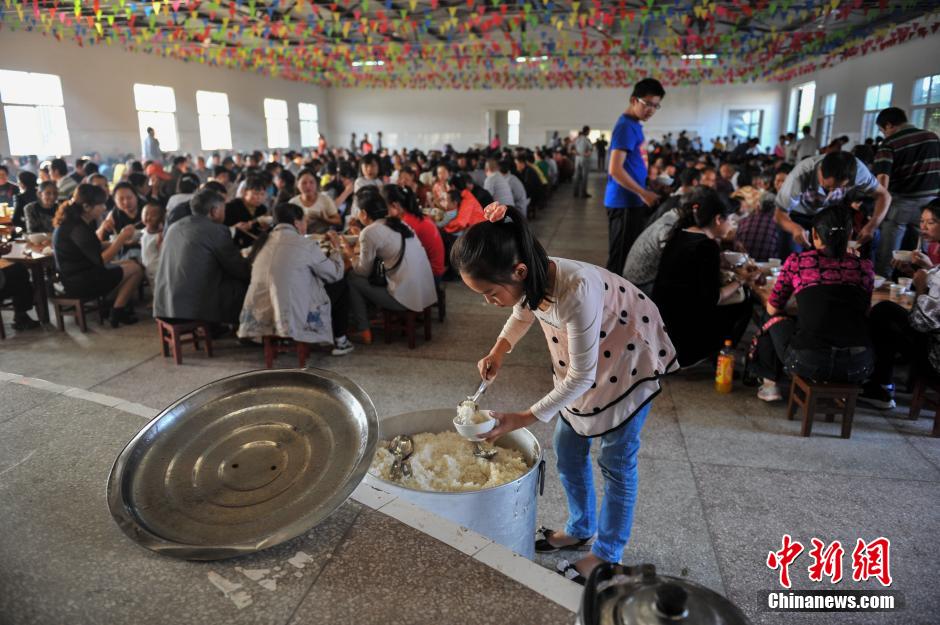 A traditional wedding was held in Zhangbu Village, Yiliang County, Yunnan, Oct. 6, 2014. Both the bride and the groom work in Kunming, and they decided to go back to their hometown to have a traditional wedding. According to traditional custom of rural areas in Yunanna, they invited everyone in the village to the wedding. For those who live in cities, a special traditional wedding like this is very unique.