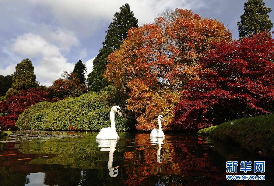 Two swans swim in a lake at south England's Sheffield Park. (Xinhua/Reuters)