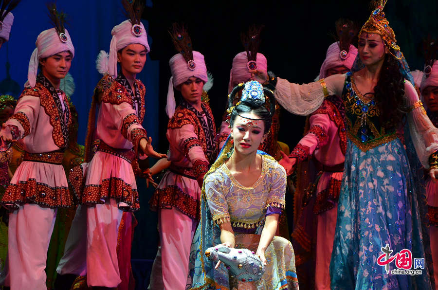 Artists perform the dance drama "Silk Road" in Lanzhou on Thursday, Oct. 9, 2014, as part of the activities marking the 3rd International Culture Industry Conference, which is being held in the city. [Photo by Su Yadong / China.org.cn]