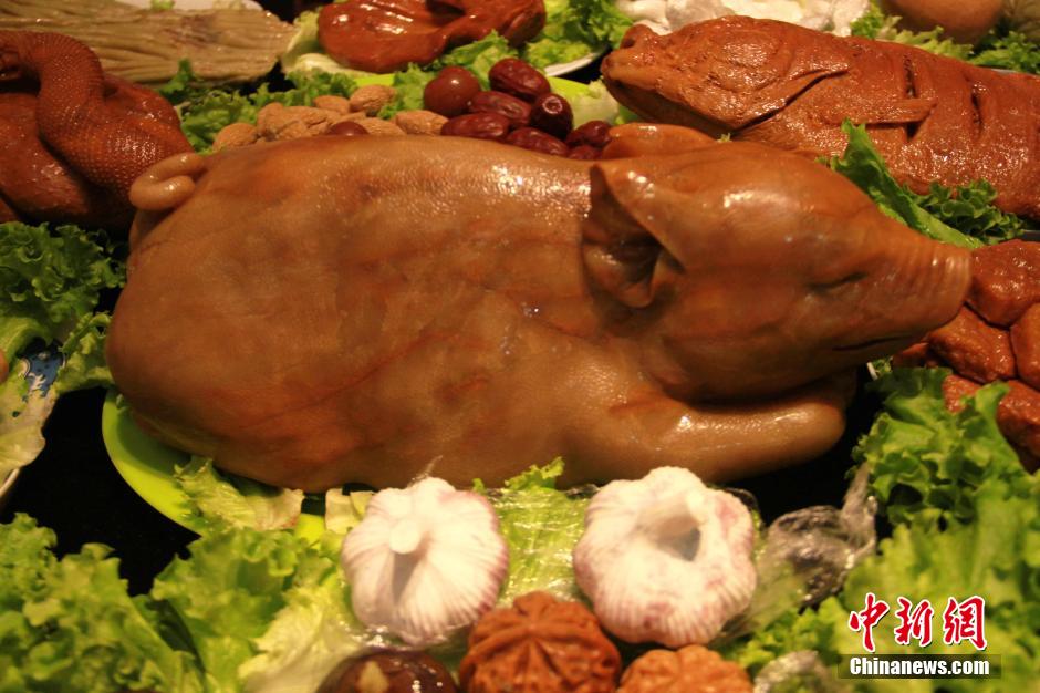 A Chinese feast made from stone debuts in Xi’an, northwest China’s Shaanxi province on Oct. 10, 2014. The delicacies are so vivid that they would make one’s mouth water. The whole feast sells at 360,000 yuan. (Chinanews/Zhang Yicheng)