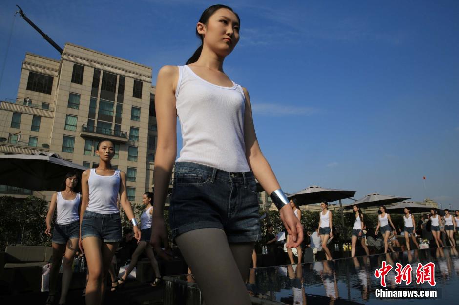 On October 10, 2014, 42 finalists of the Shanghai International Model Contest make their debut at Shanghai Designer Salon. Some of them are selected by designers to attend the 2015 Spring/Summer Shanghai Fashion Week. The final will be held on October 24, 2014. (Chinanews/Pan Suofei)